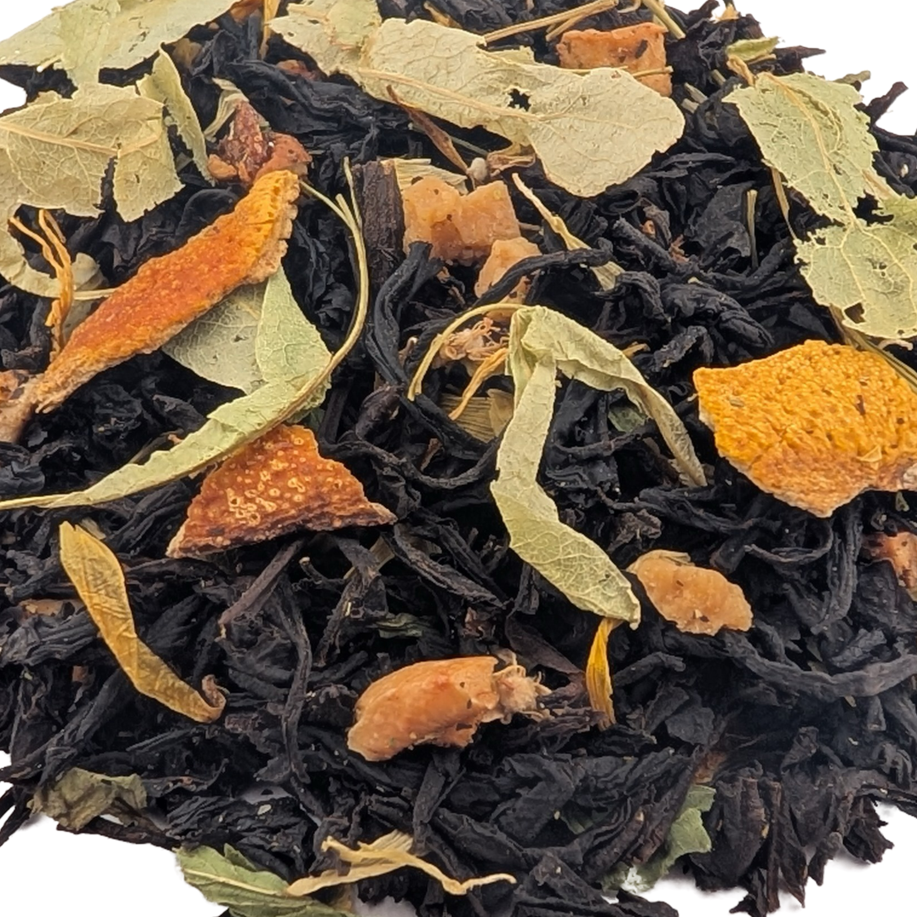 | Сырье для продукта | Чай черный Ассам, мята лист, цедра апельсина, цветы липы, каленлула лепестки, кубики карамели, кусочки яблока сушеные, ароматизатор |