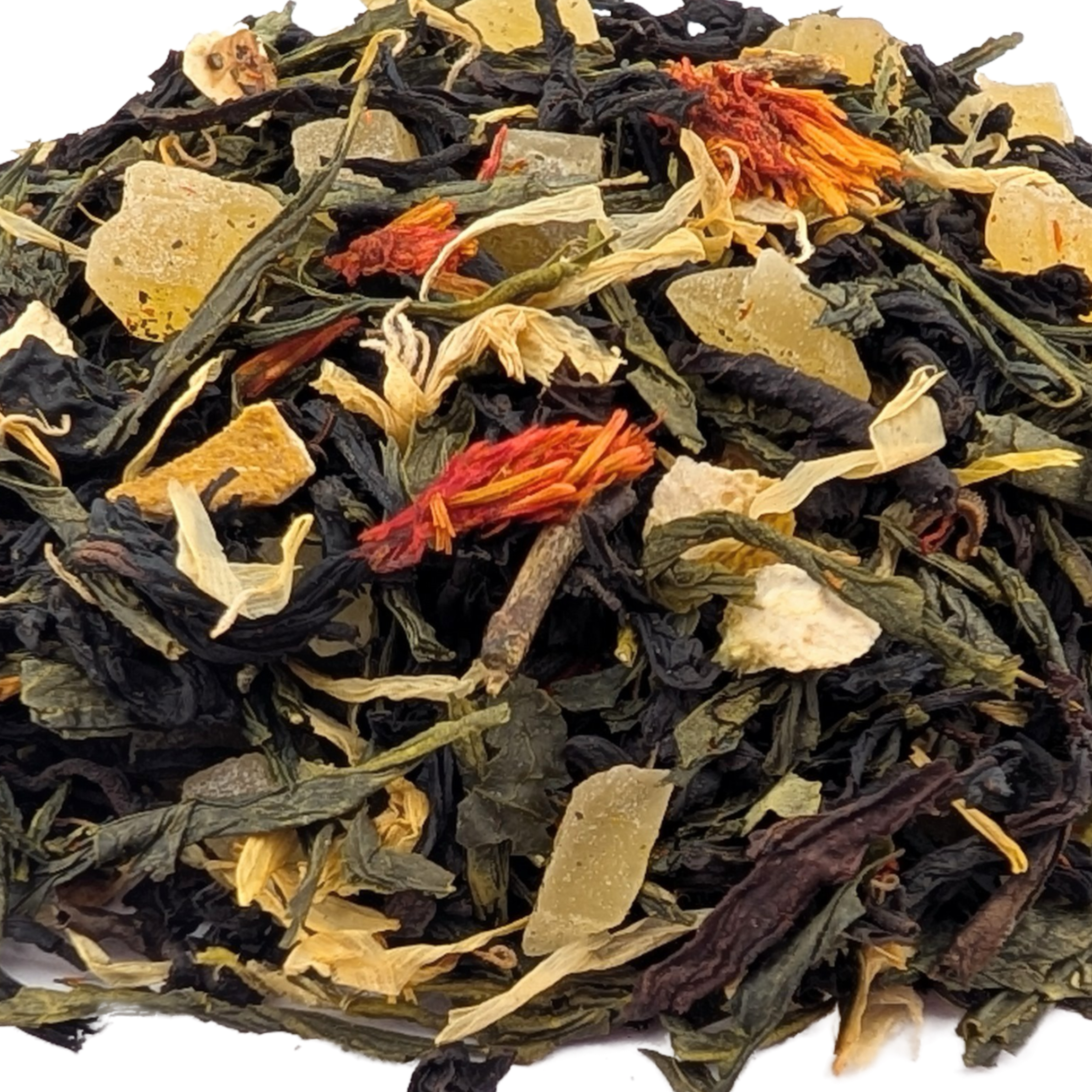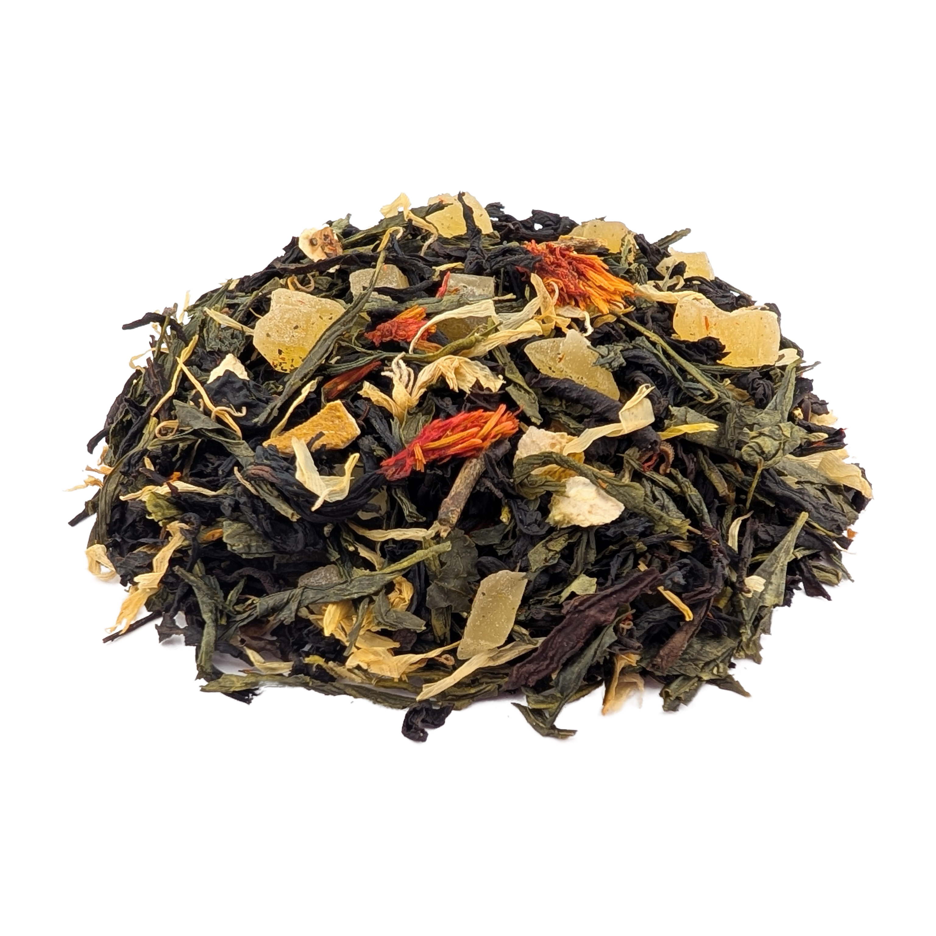 | Сырье для продукта | Чай черный Ассам, зеленый чай сенча, цукаты ананаса, цедра лимона, лепестки календулы, цветки сафлюра, ароматизатор |