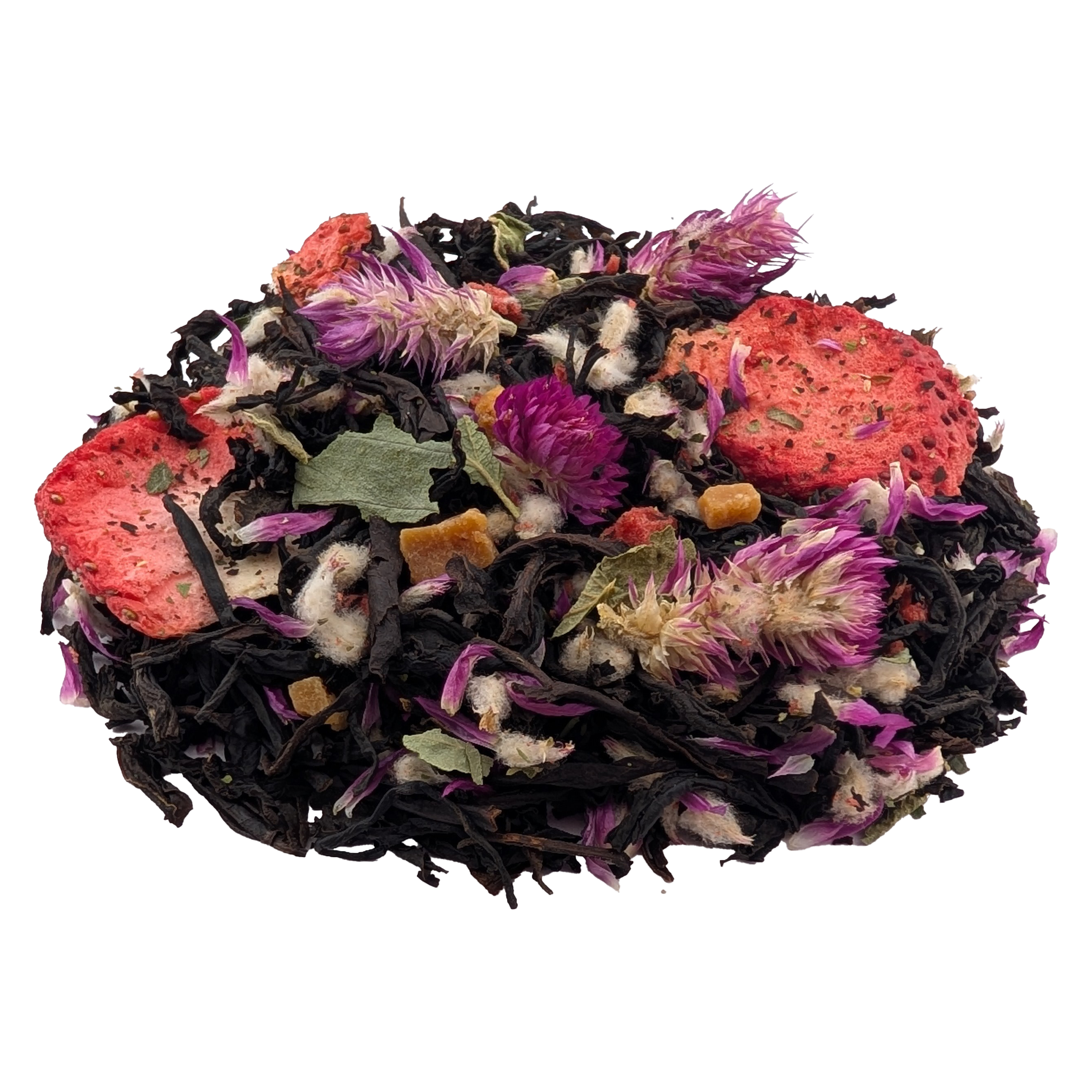 | Сырье для продукта | Чай черный Ассам, слайсы клубники, карамель, лист клубники, цветки гомферна, кусочки клубники, ароматизатор |