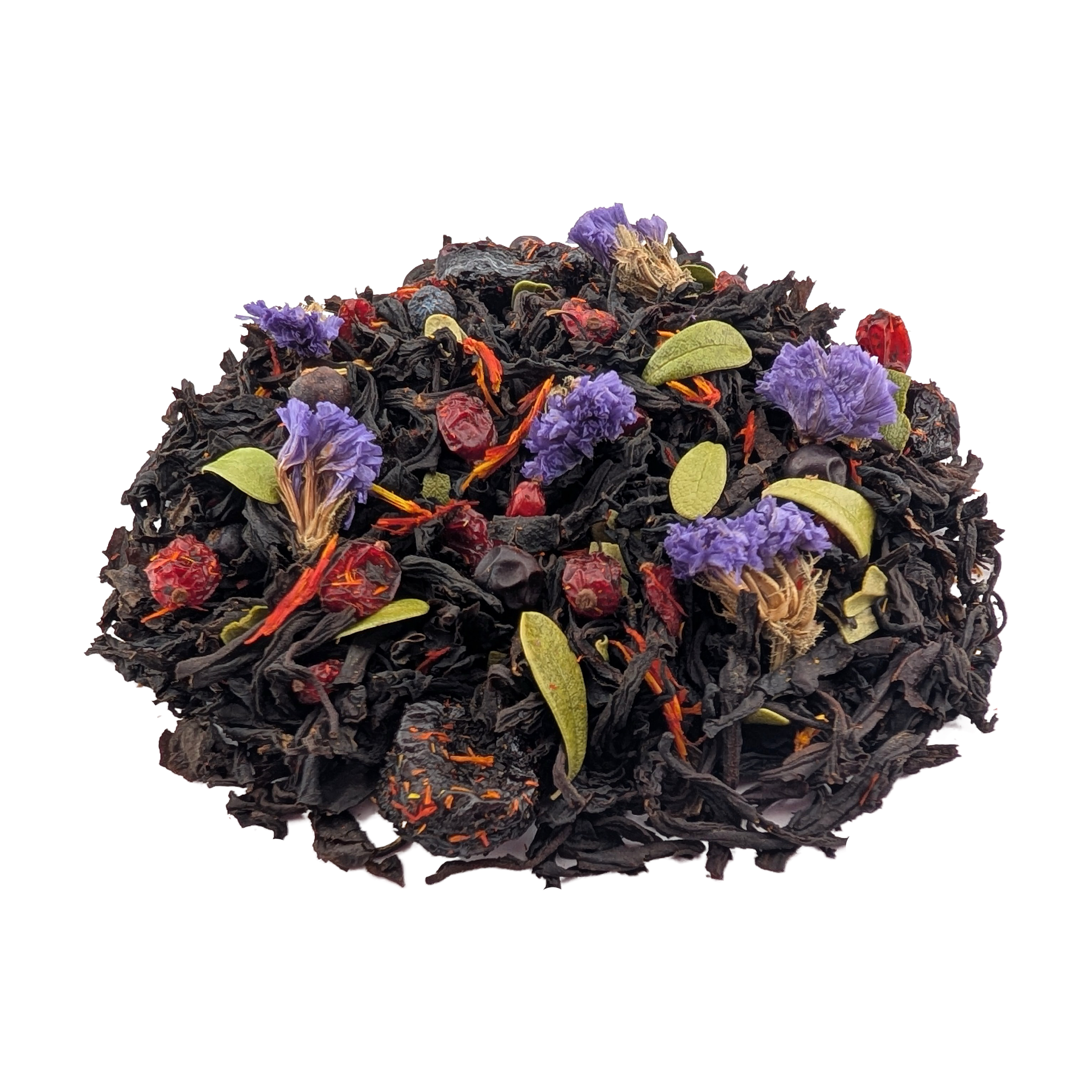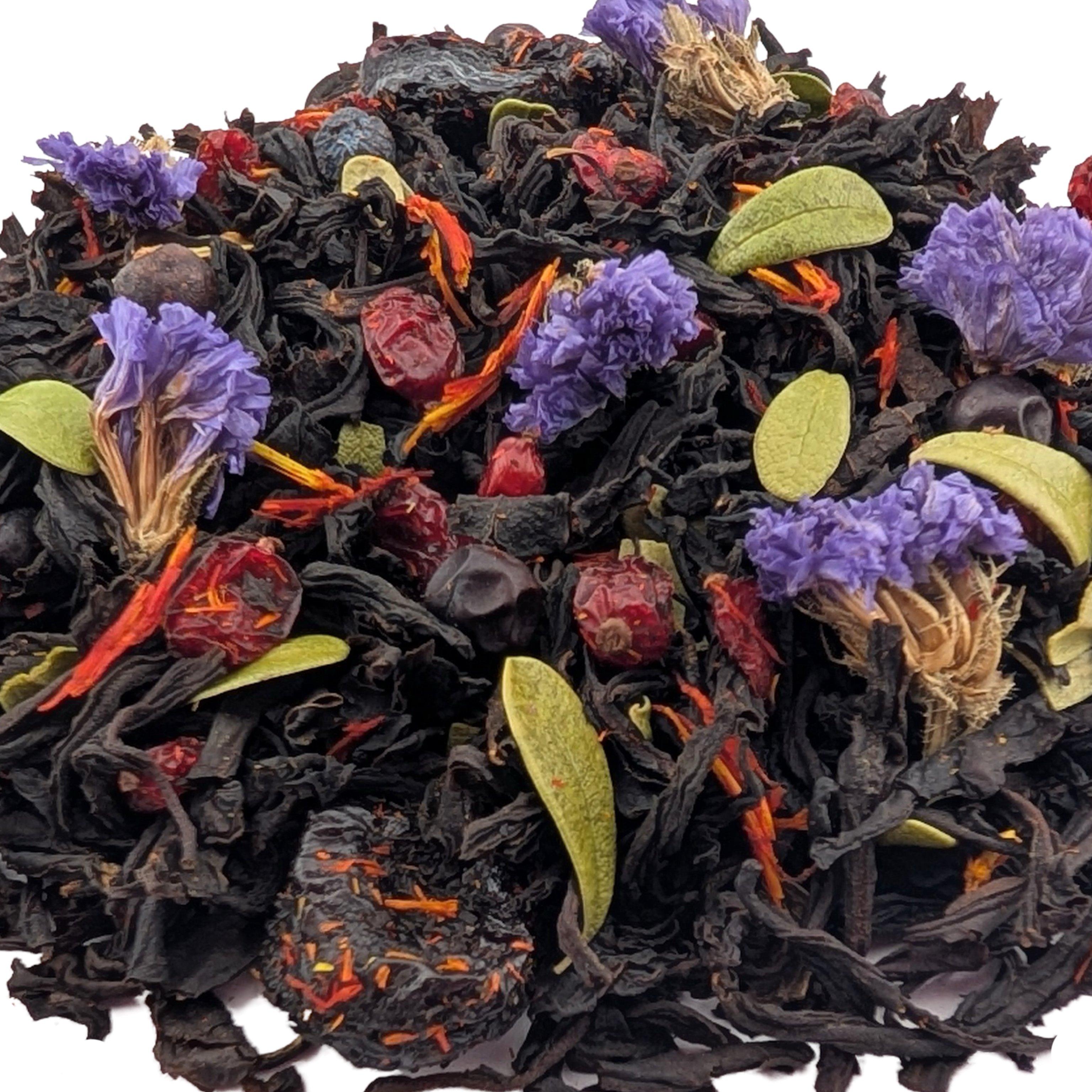 Глубокий, смолистый аромат хвойного леса, прохлада мха и щедрость тайги в одной чашке. Крепкая основа из черного Ассама обрамлена терпкостью можжевельника, лесной кислинкой брусники и барбариса, сладостью вишни и нежными акцентами диких цветов. Настоящее путешествие в сердце дикой природы.