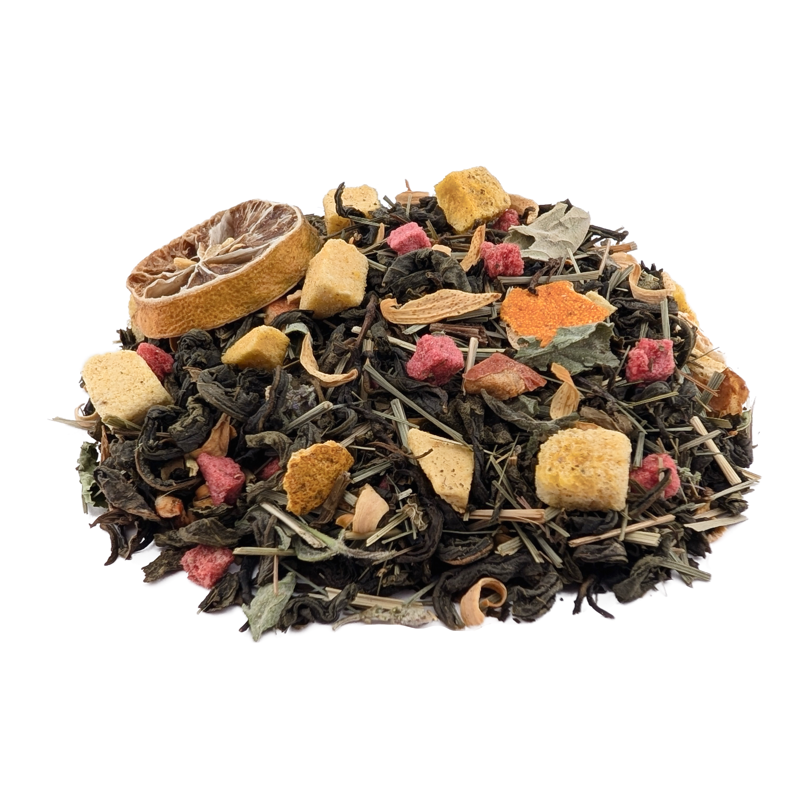 Прохлада тропиков в каждой чашке! Этот чай настоящий коктейль настроения: освежающий зеленый чай встречается с сочными кубиками манго и клубники, пряным лемонграссом и хрустящим яблоком. Мятная прохлада и пикантные ноты лайма идеально дополняются благородной цедрой и нежными цветками апельсина, создавая легкий, «лайтовый» микс для истинного наслаждения.