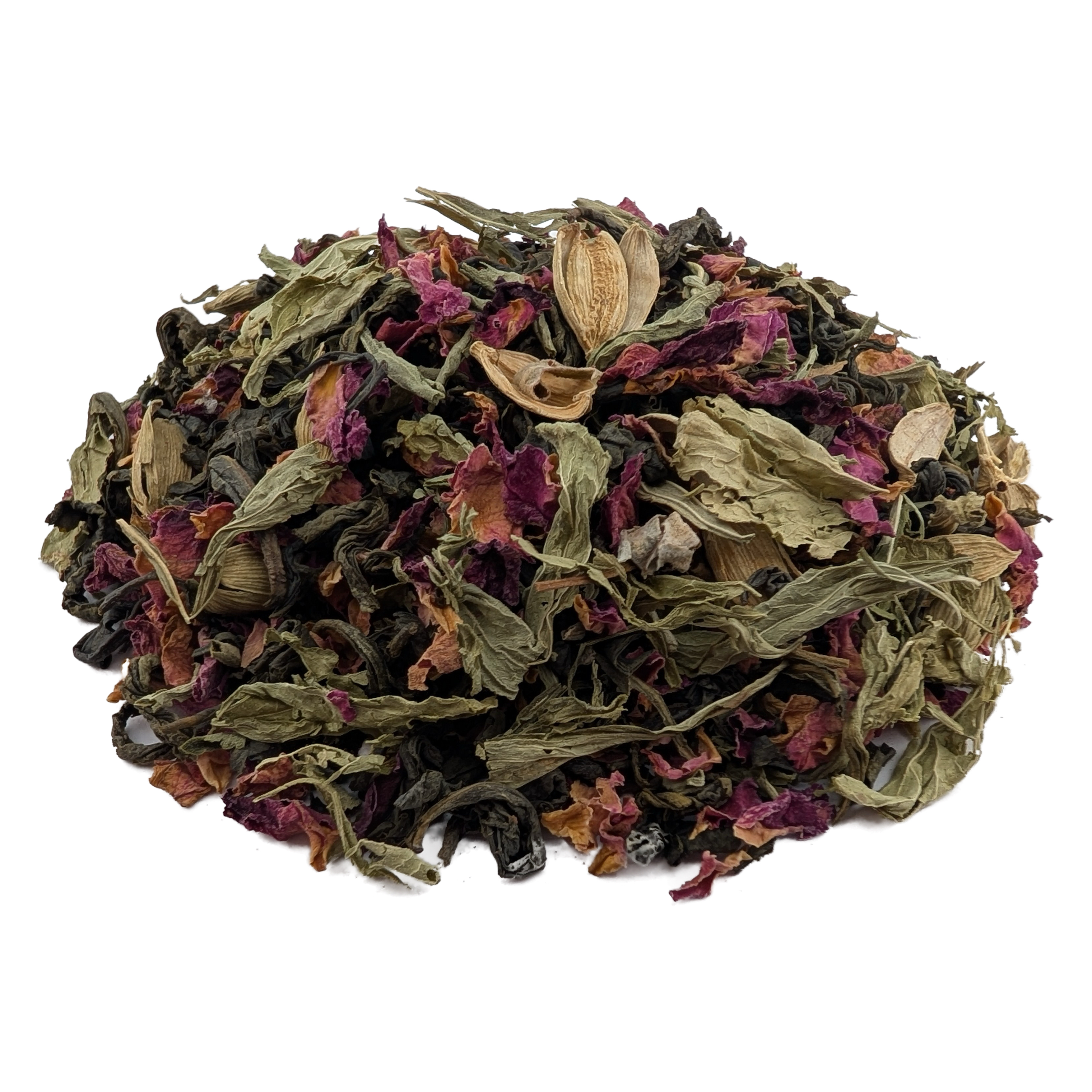 Тёплый, как уютный плед, и изысканный, как узор первого инея. Мягкая основа из зелёного чая сплетается в причудливый узор с бархатистыми лепестками розы, создавая ощущение нежной осенней романтики. Кардамон вносит в этот букет согревающие пряные акценты, а трава стевии дарит лёгкую, естественную сладость, подобную последним солнечным лучам. Идеальный спутник для долгих чаепитий под шорох листвы.