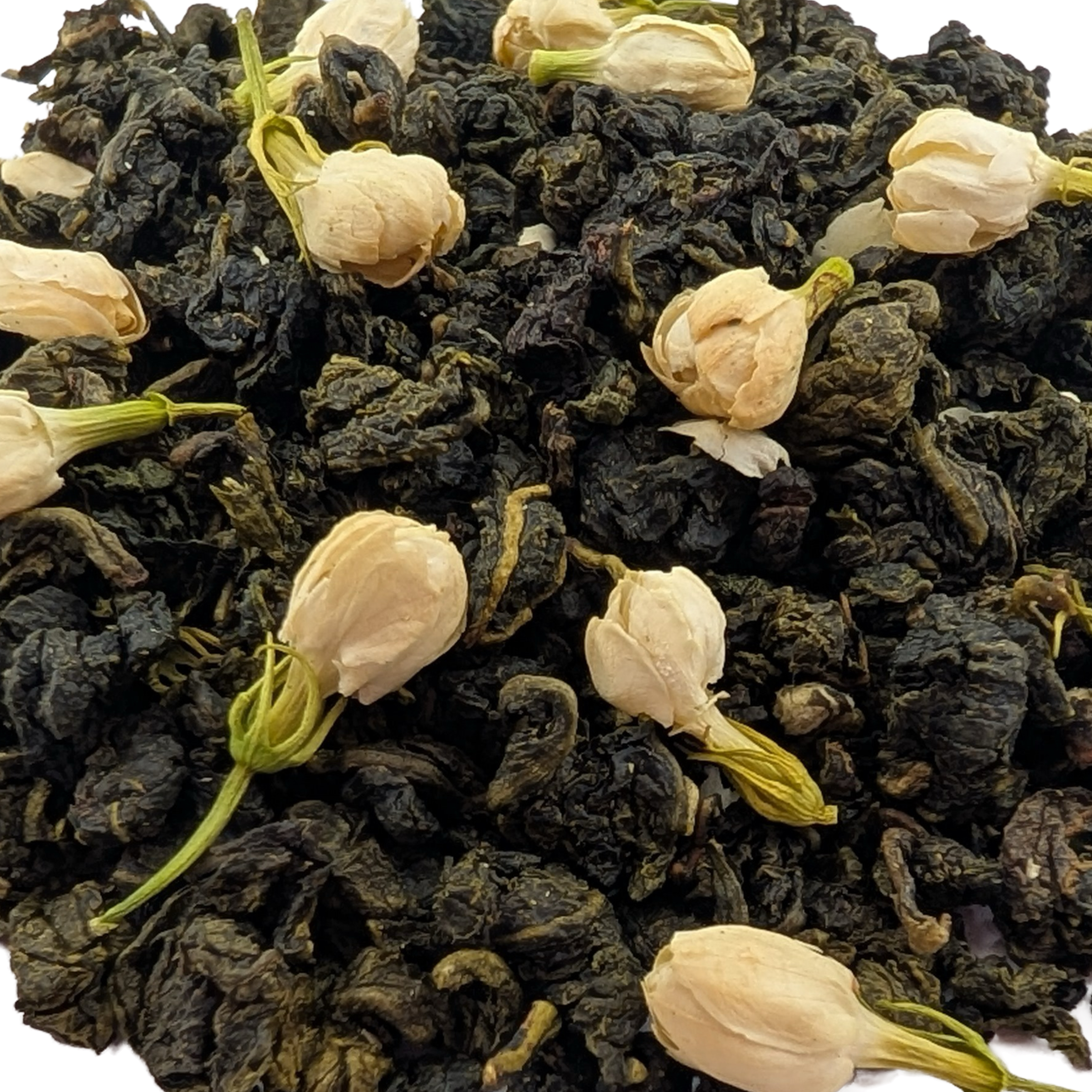 Утончённый дуэт, воплощающий гармонию природы. Нежный, слегка маслянистый зелёный улун вступает в изысканный танец с царственным ароматом жасмина. Каждый глоток — это волнующее сочетание бархатистой глубины чая и опьяняющей, цветочной свежести, оставляющее долгое, сладковато-медовое послевкусие.